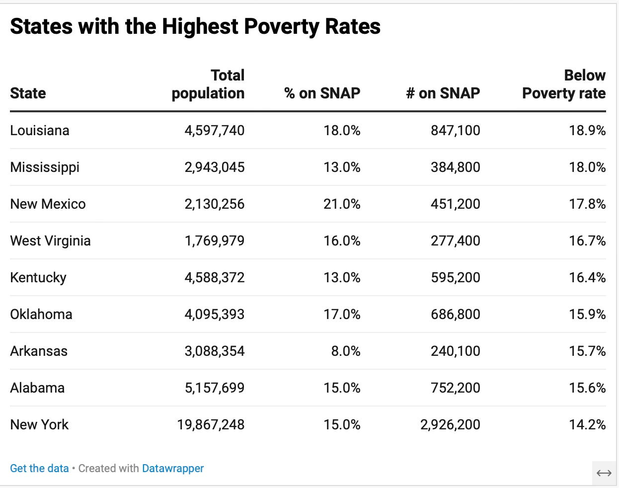 States with the highest poverty rates