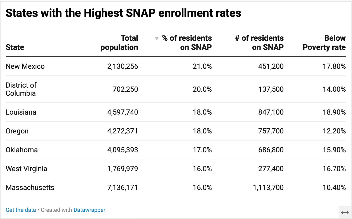 This is a list of the states with the highest rate of SNAP participation.