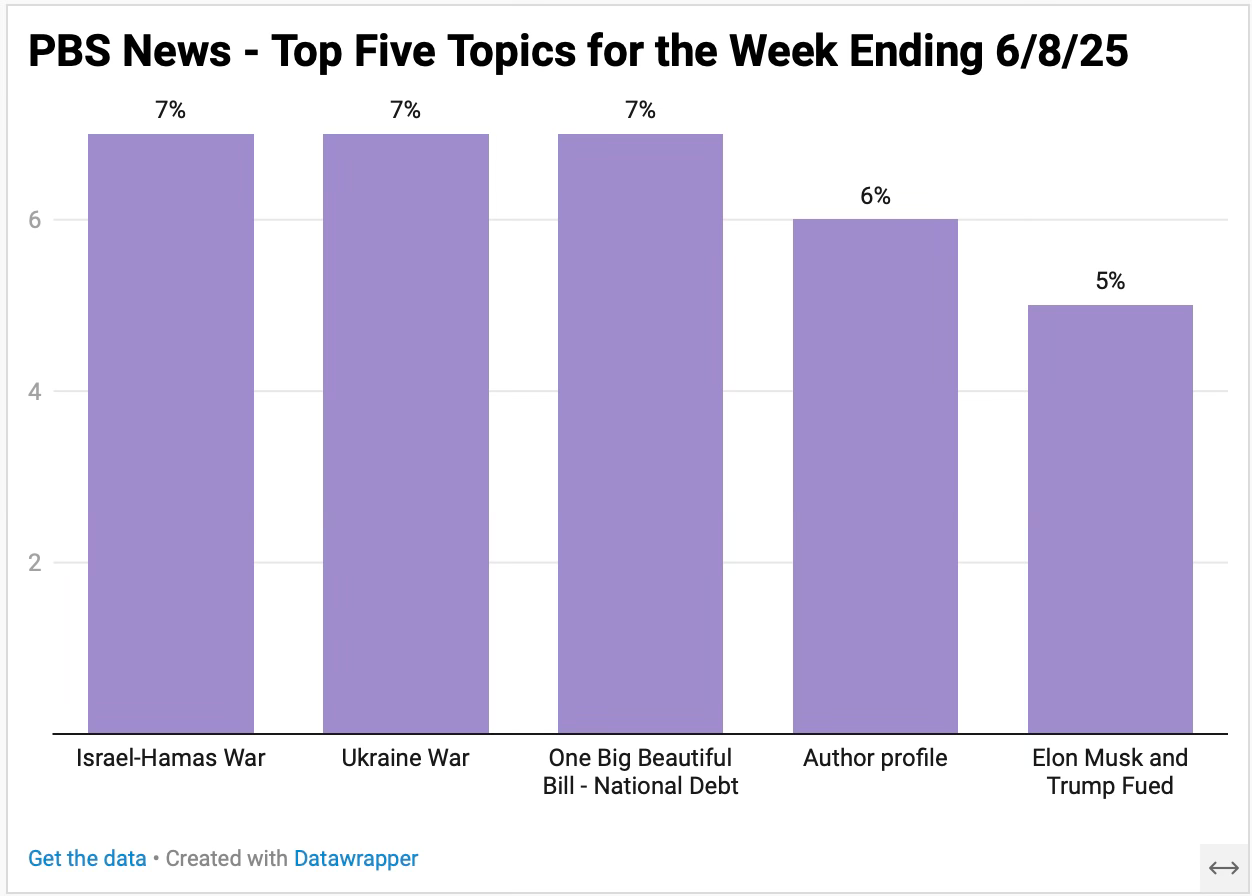 Every week I compare the hours I’ve watched on Fox to five hours of the PBS News Hour. The following list are stories that PBS covered that Fox News did not. Source - PBS News Hour transcripts