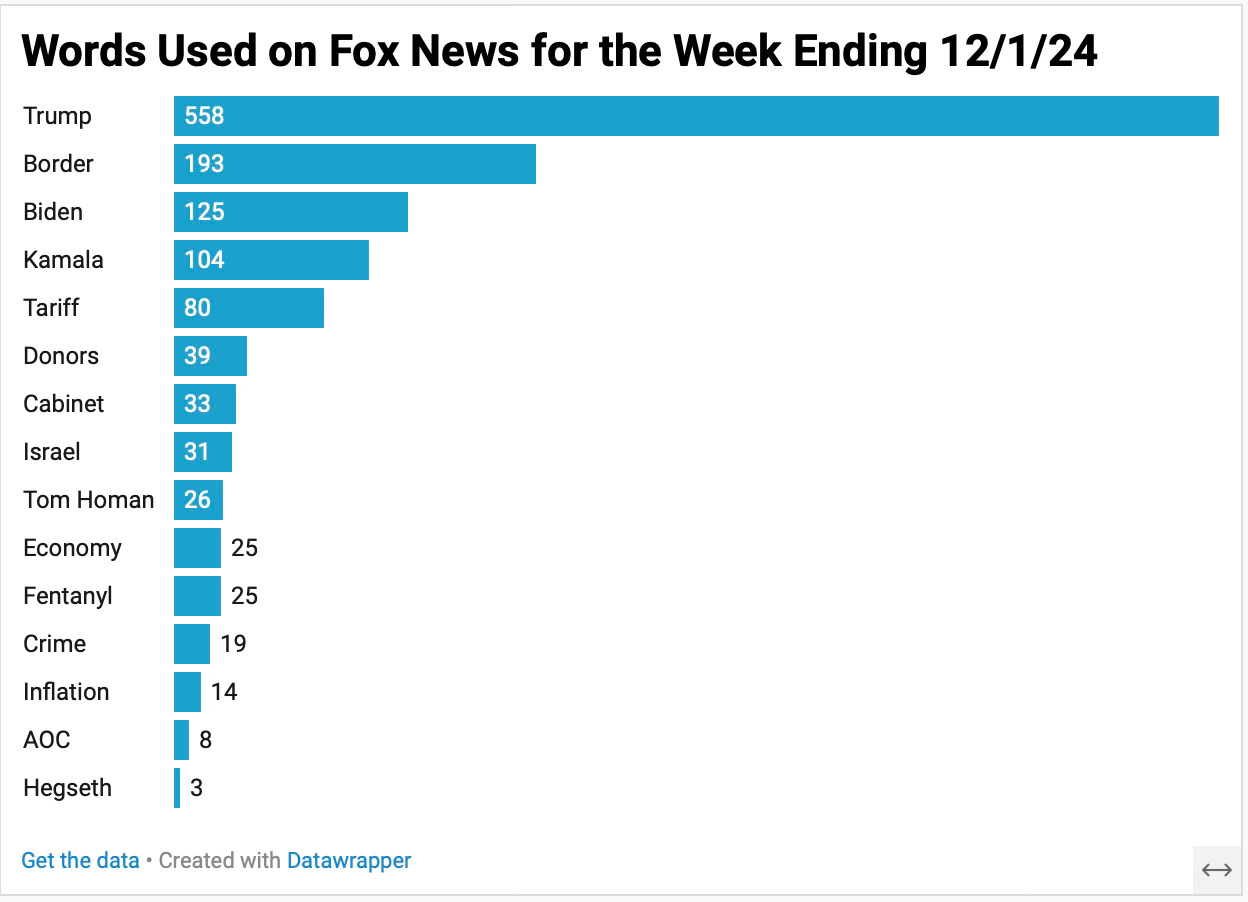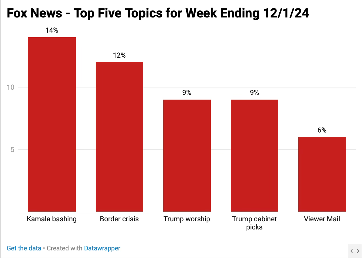 A condensed overview of 15 hours of Fox News for the week ending 12/1/24