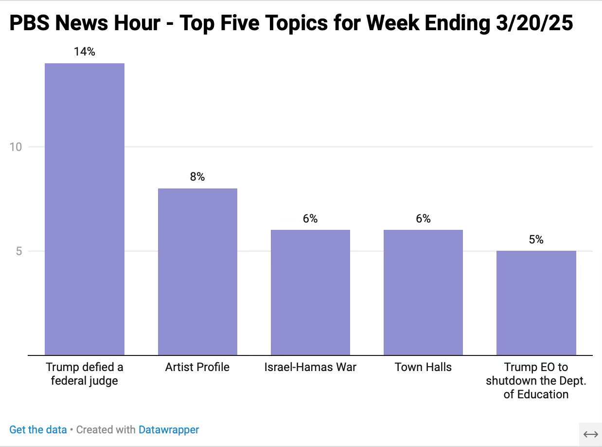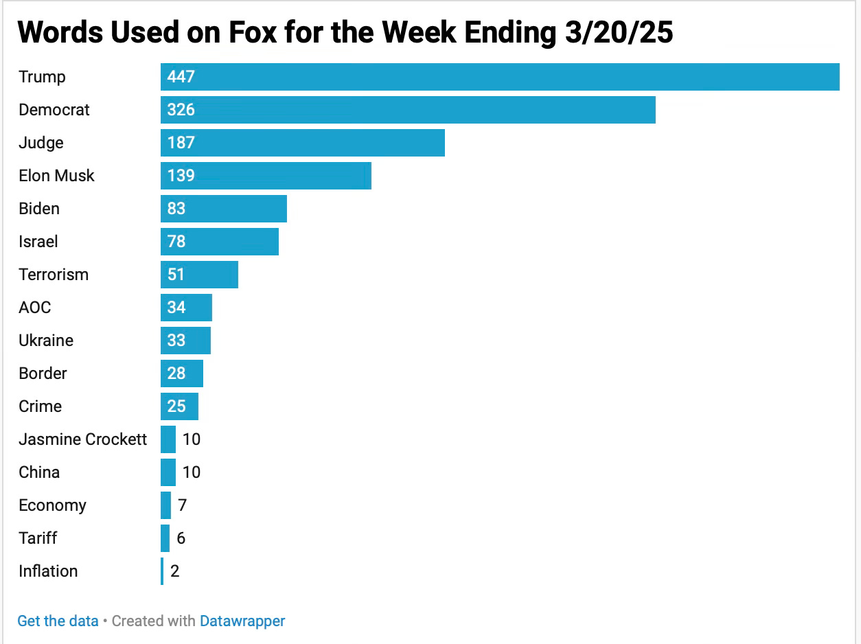 A condensed overview of 15 hours of Fox News for the week ending 3/23/25