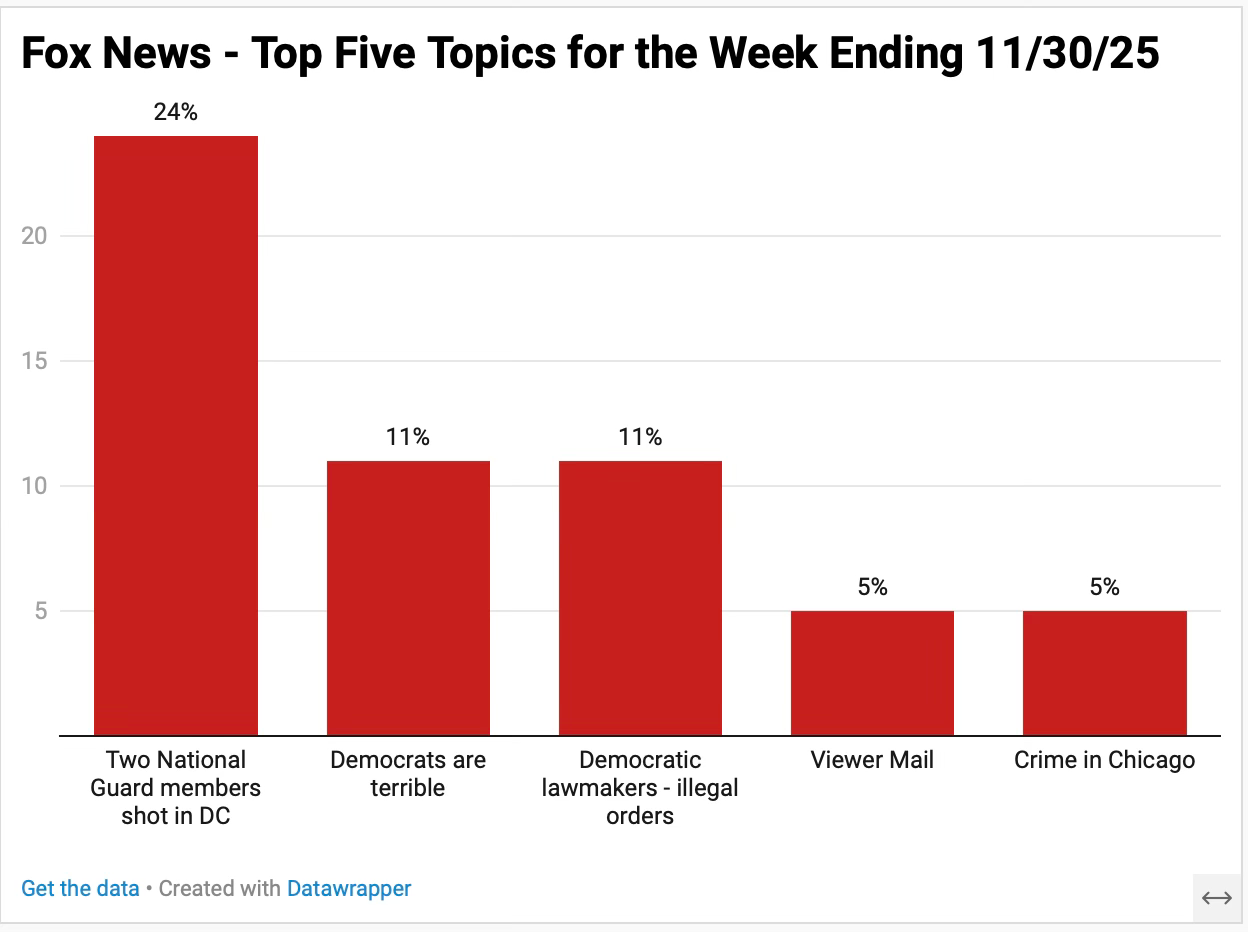 A condensed overview of 14 hours of Fox News for the week ending 11/30/25