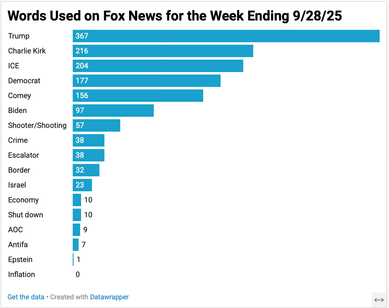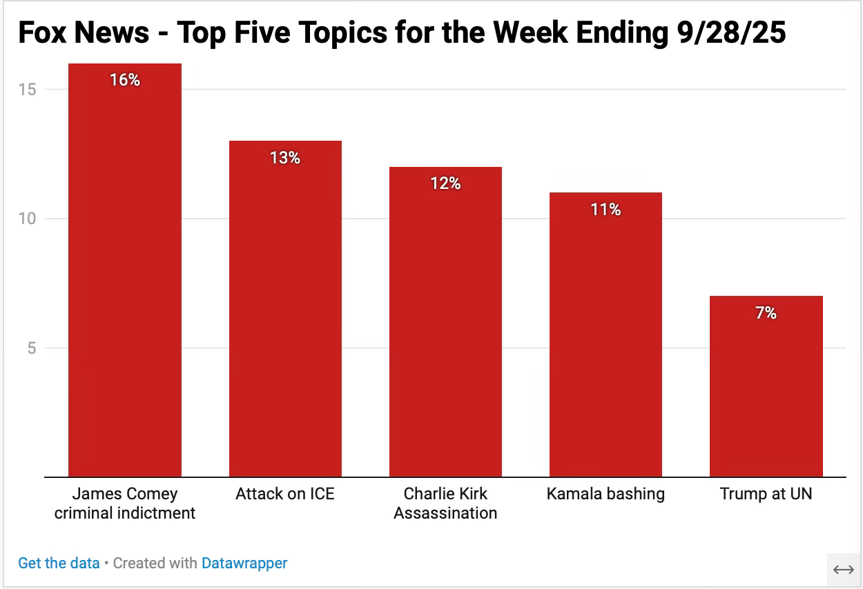 A condensed overview of 15 hours of Fox News for the week ending 9/28/25