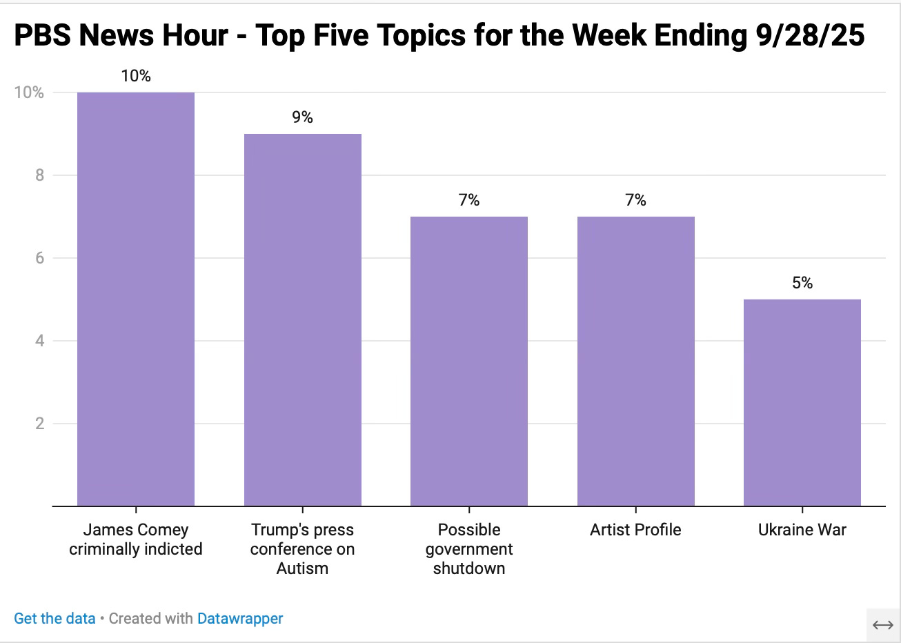 Every week I compare the hours I’ve watched on Fox News to five hours of “The PBS News Hour,” the following list are stories that PBS covered that Fox News did not. Source - PBS News Hour transcripts. This list is slightly truncated due to space.