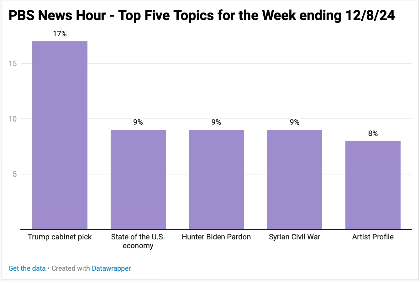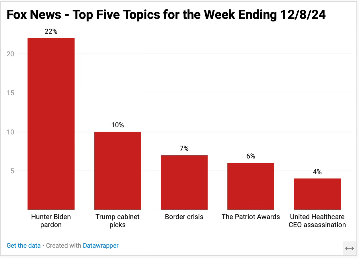 A condensed overview of 19 hours of Fox News for the week ending 12/8/24